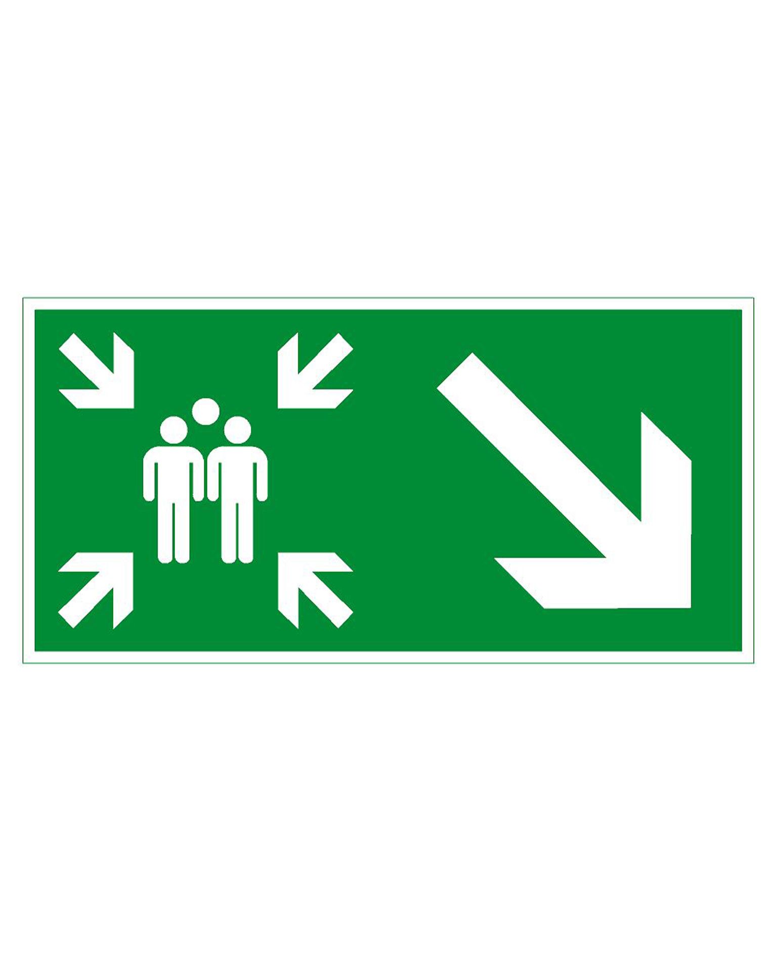 - Produktsti Hjem Skilt og veiledningVeilederskiltNødutgangskilt Samleplass pil ned til høyre, Ibond aluminium refleks, 300x150 mm