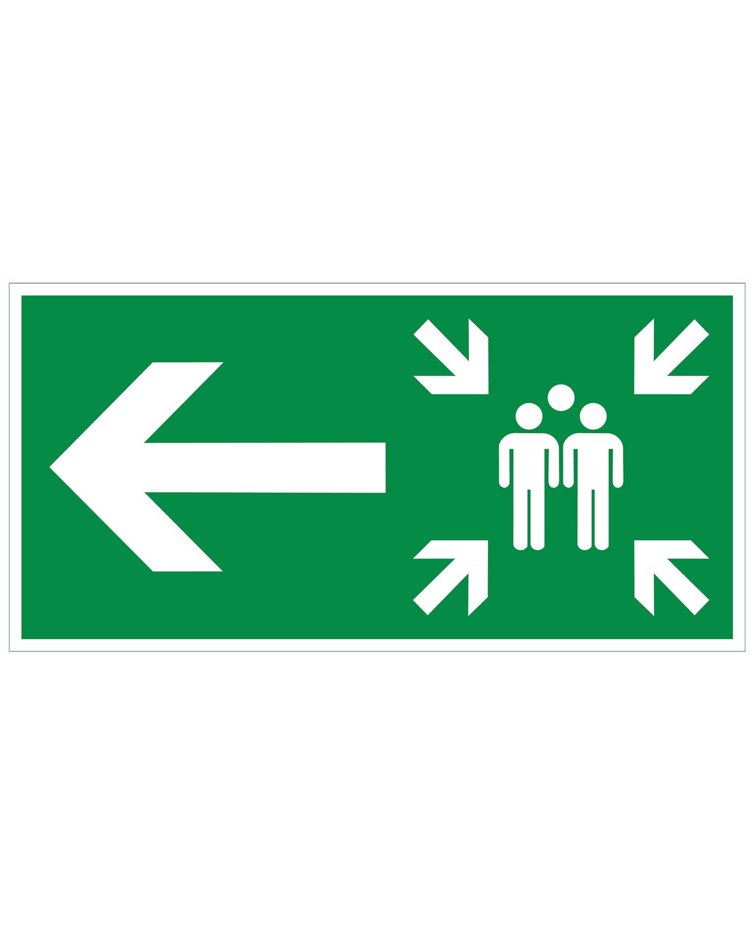 - Produktsti Hjem Skilt og veiledningVeilederskiltNødutgangskilt Samleplass pil venstre, plast etterreflekterende 1 mm, 300x150 mm